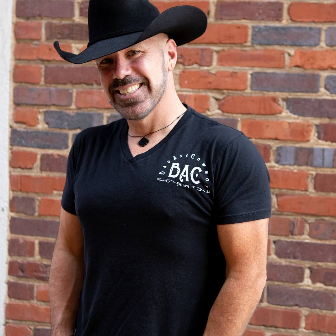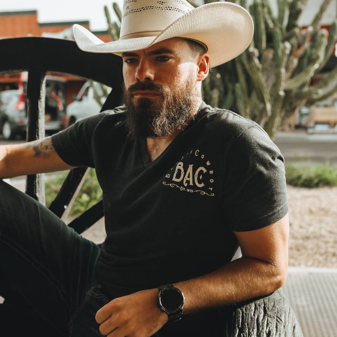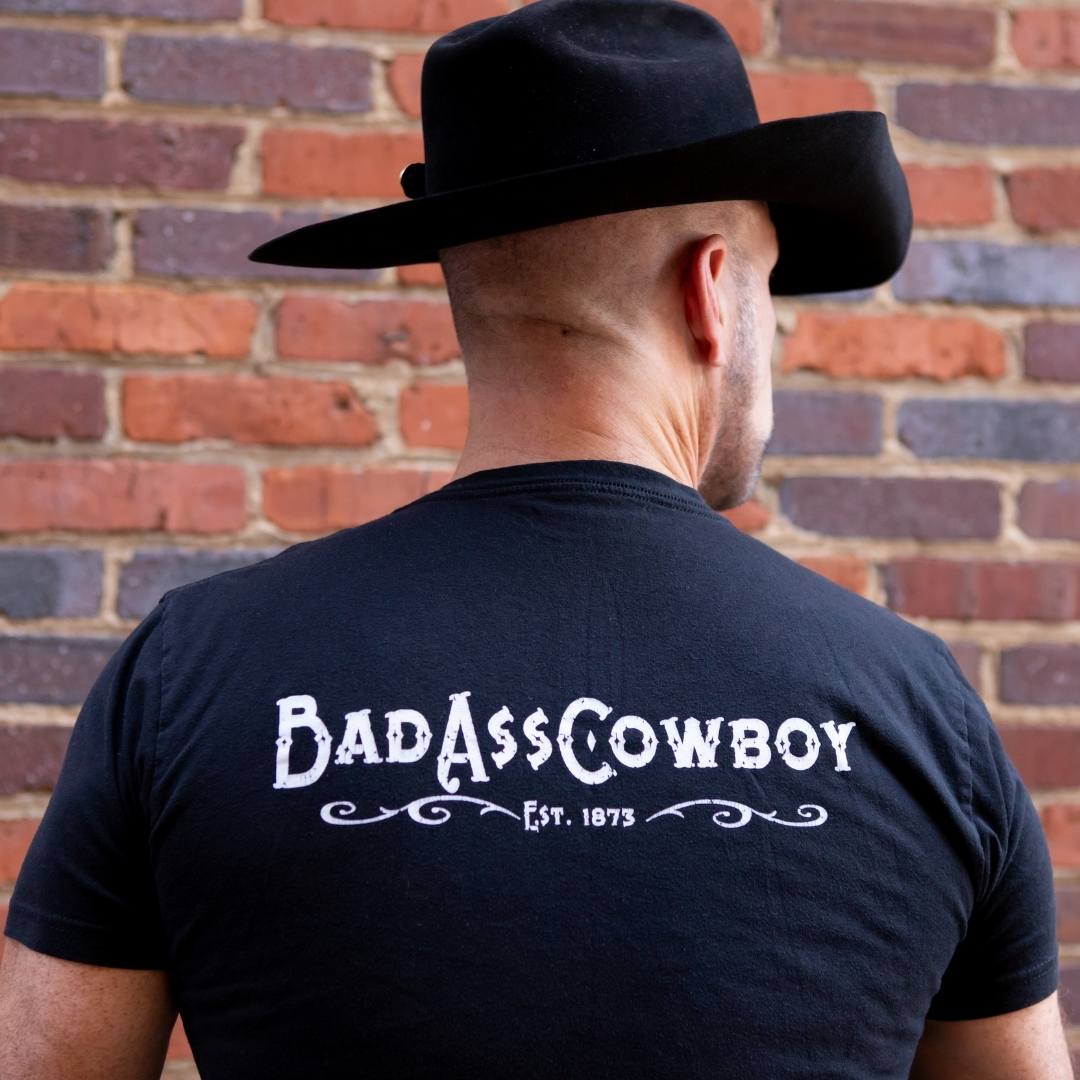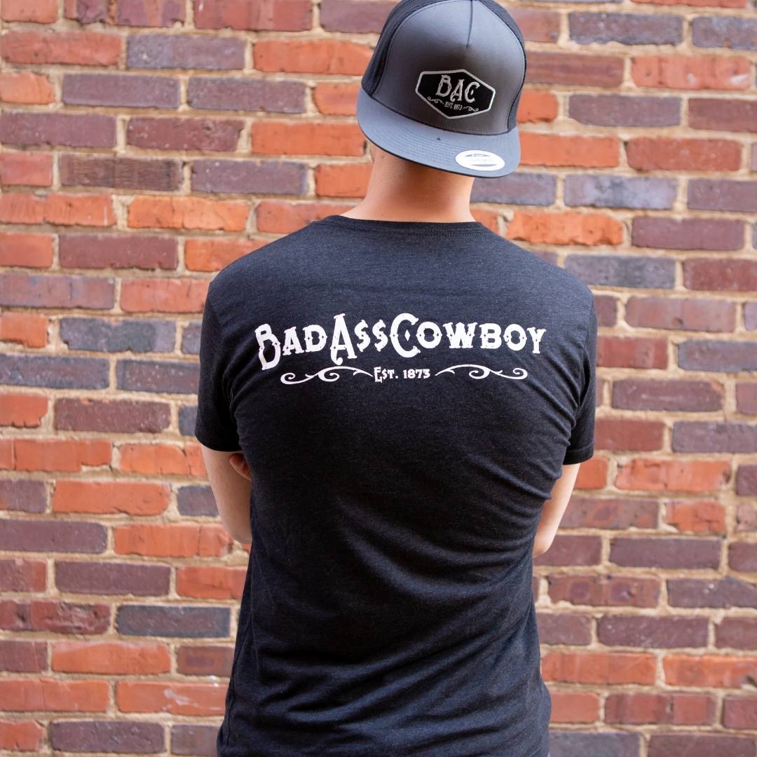 Bad Ass Cowboy V-Neck Tee Shirt in Black, Military Green and Charcoal Gray