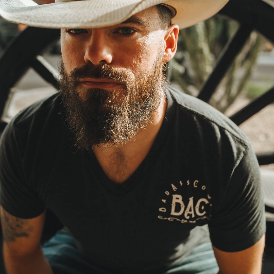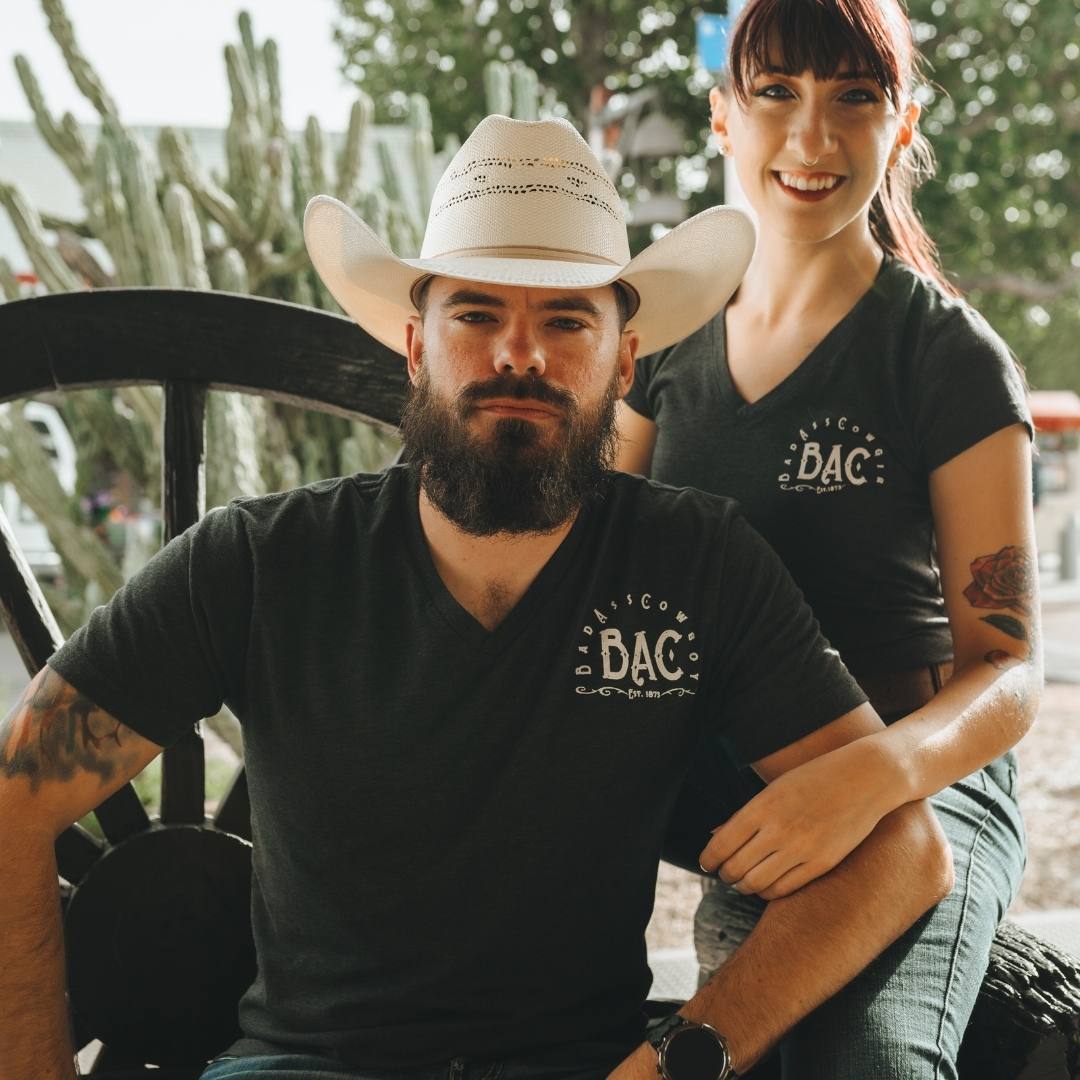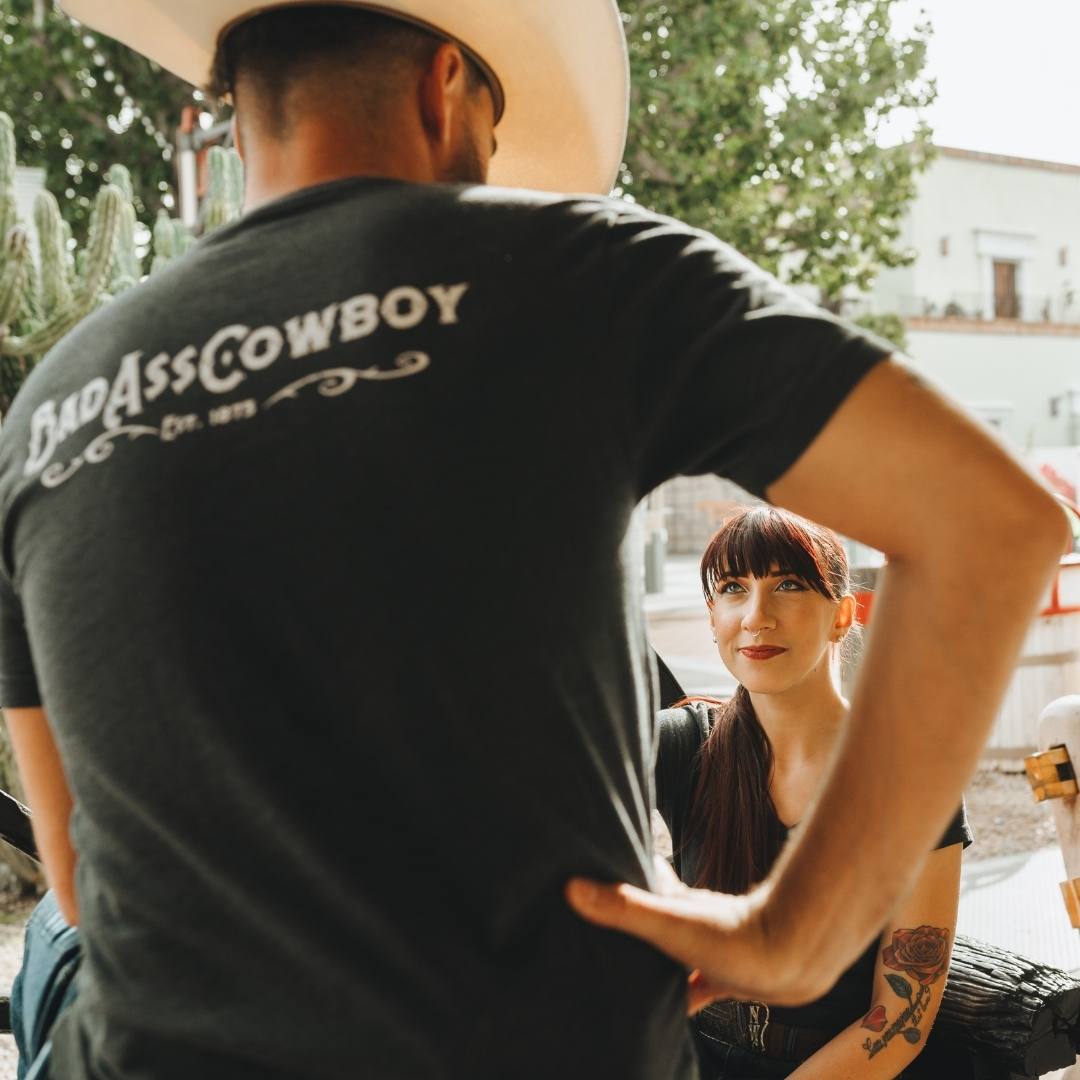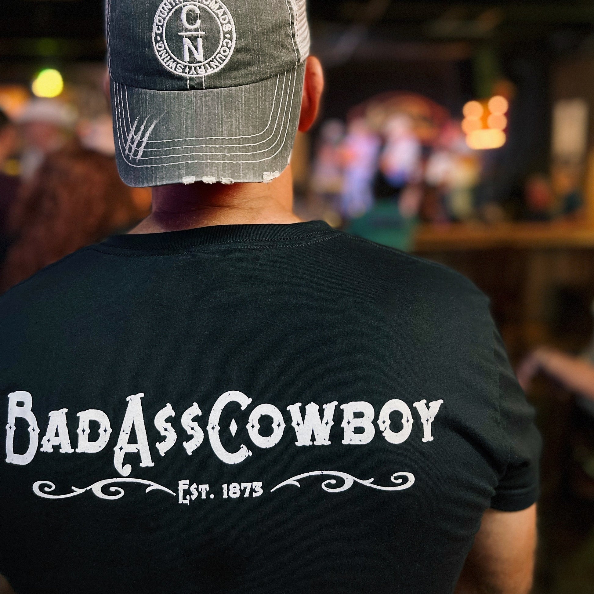 Bad Ass Cowboy V-Neck Tee Shirt in Black, Military Green and Charcoal Gray