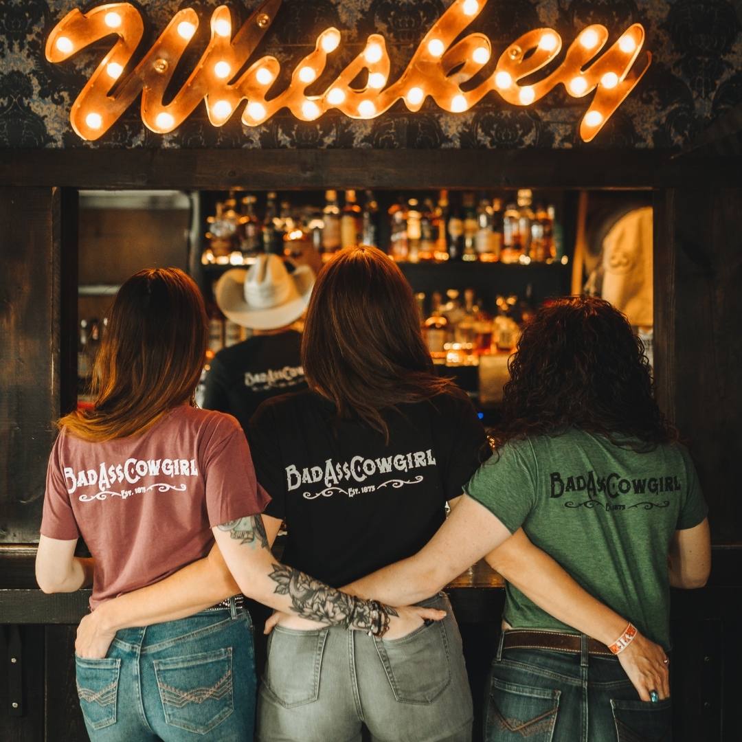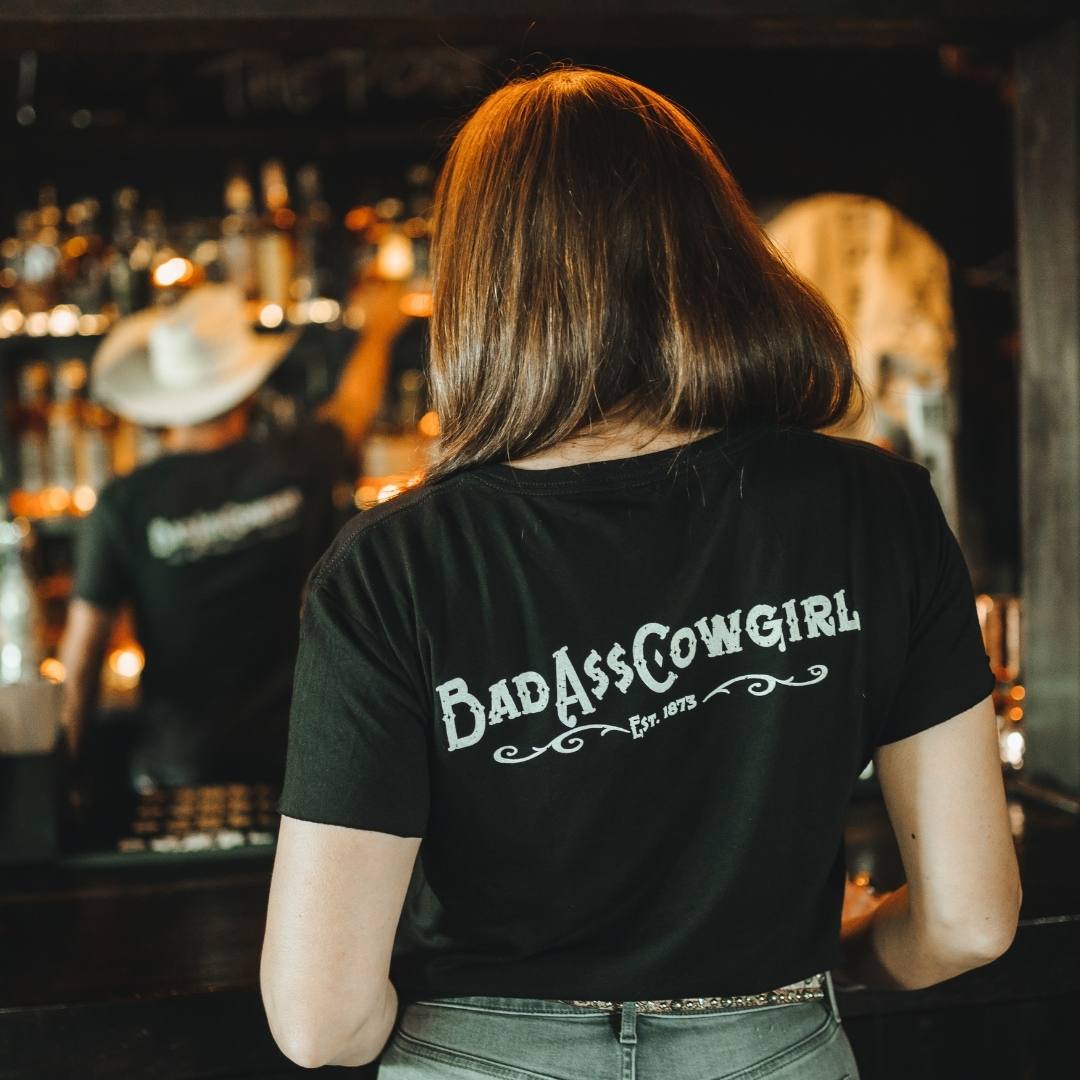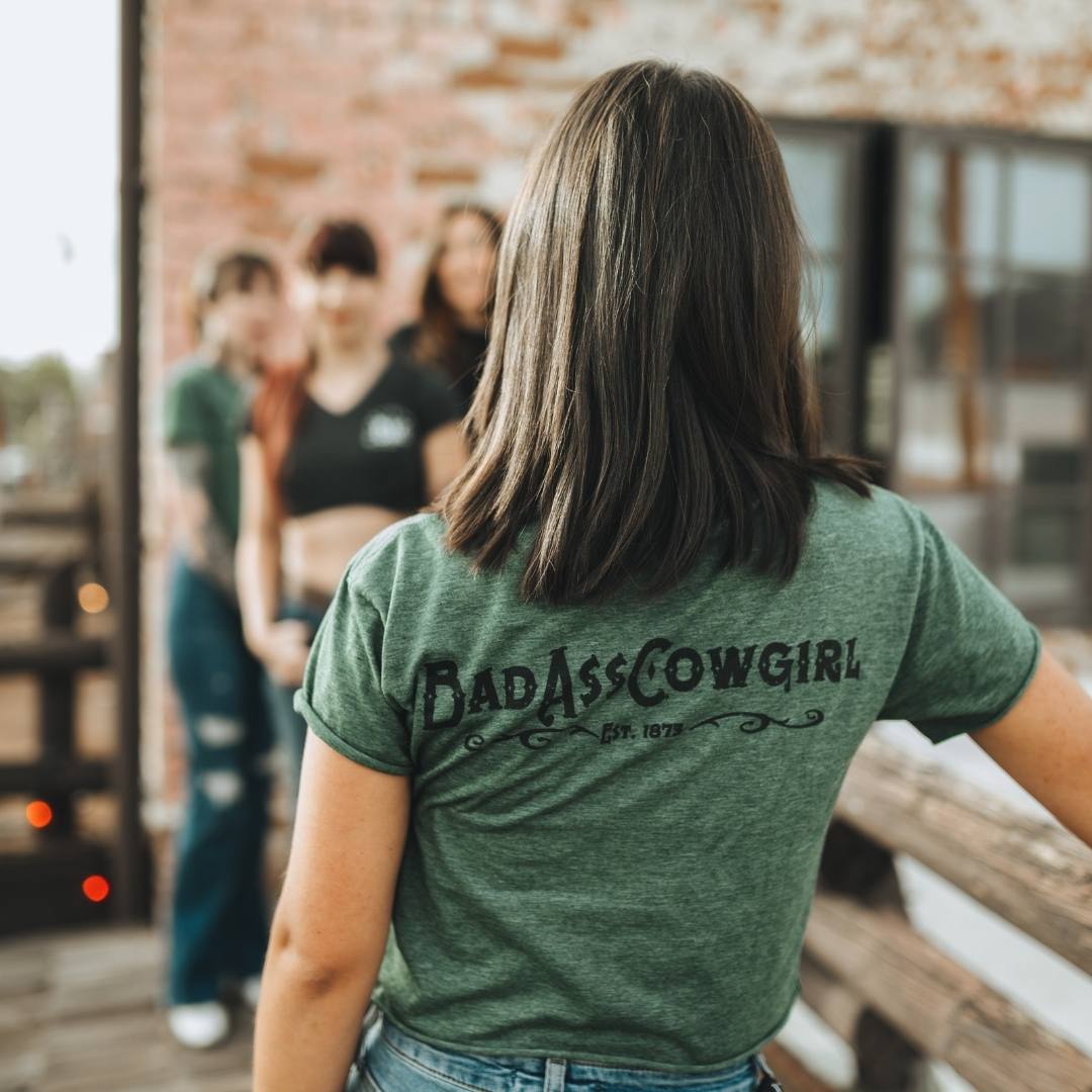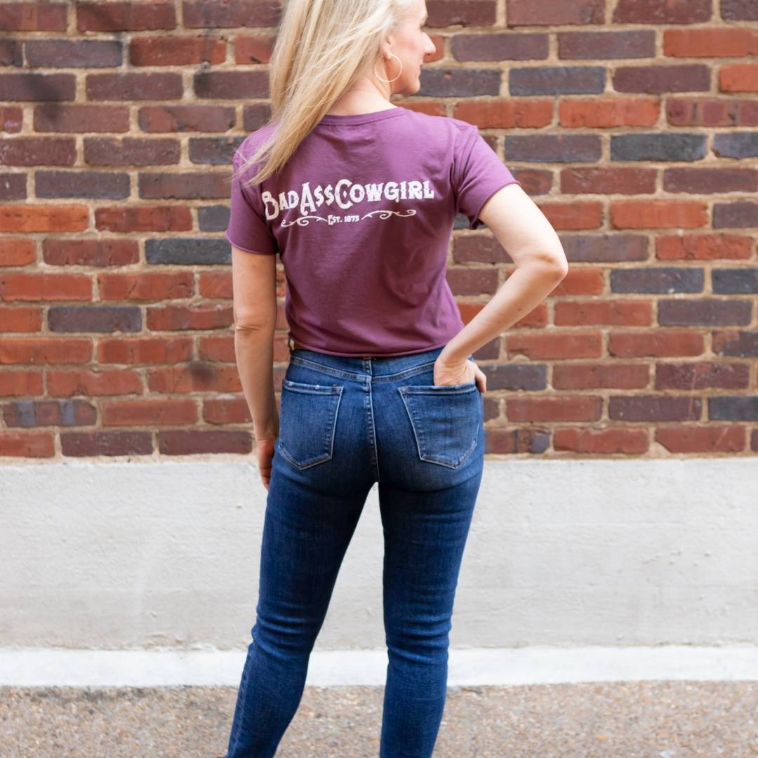 Bad Ass Cowgirl Crop Top in Black, Royal Pine Green and Shiraz Purple Small Front Logo and Large Back Logo