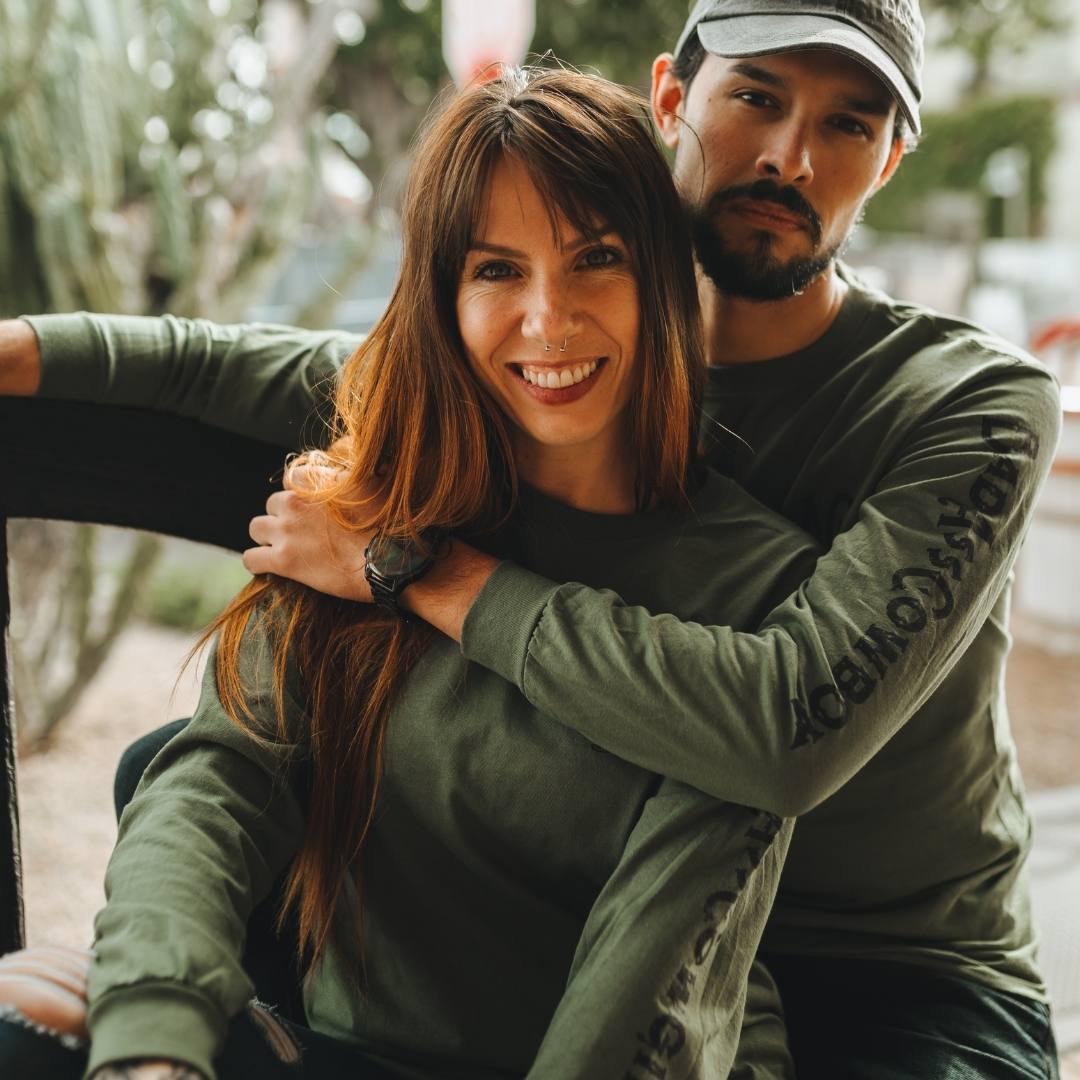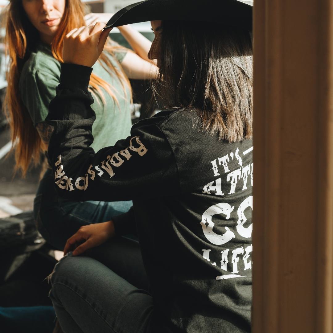 Bad Ass Cowgirl Long Sleeve T-Shirt in Black and Military Green