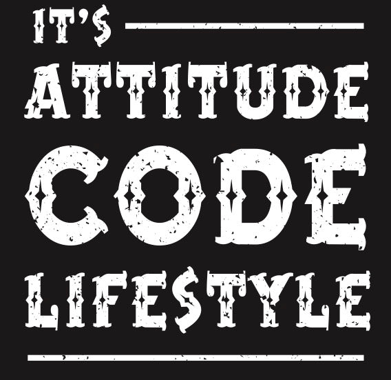- IT'S ATTITUDE CODE LIFESTYLE on back of shirt