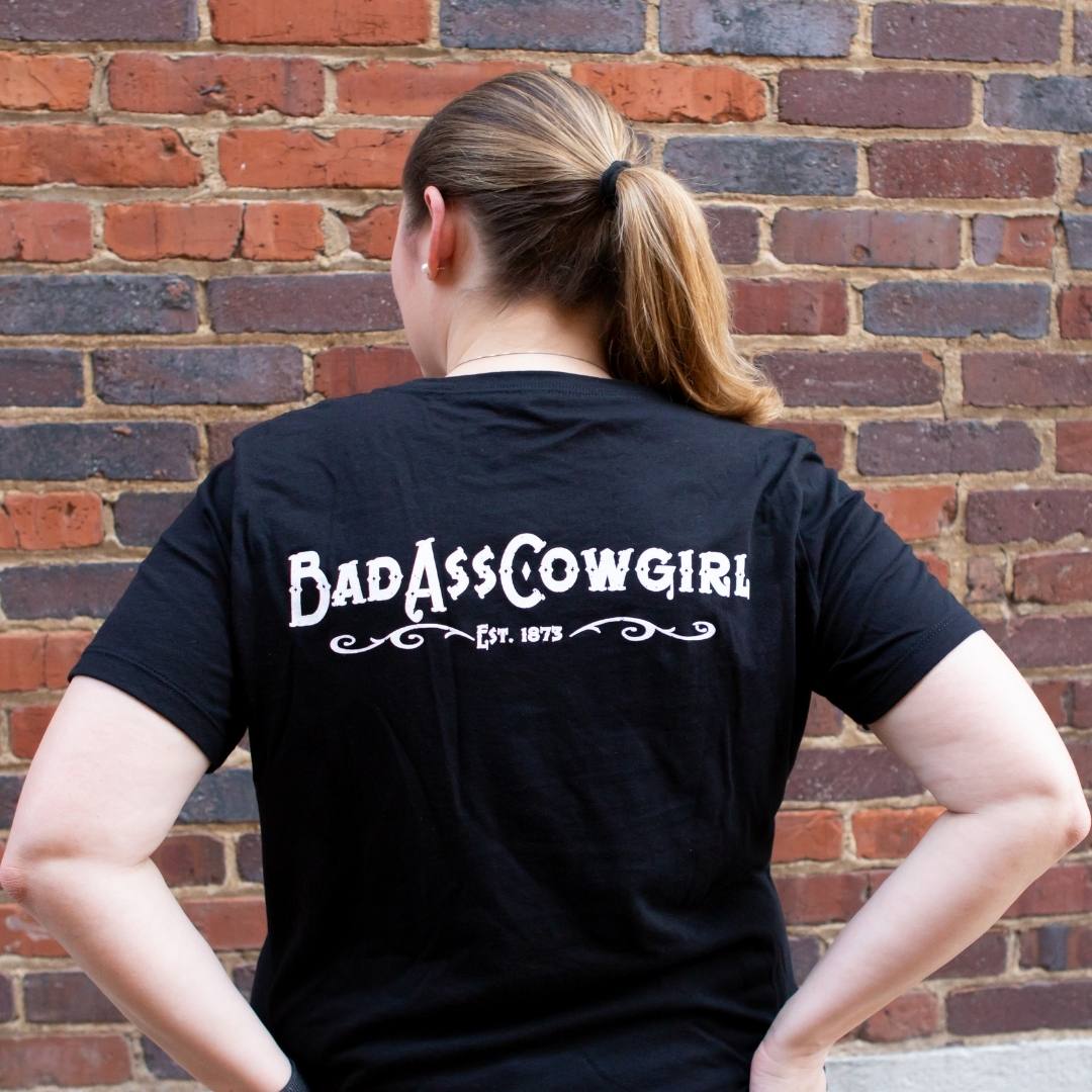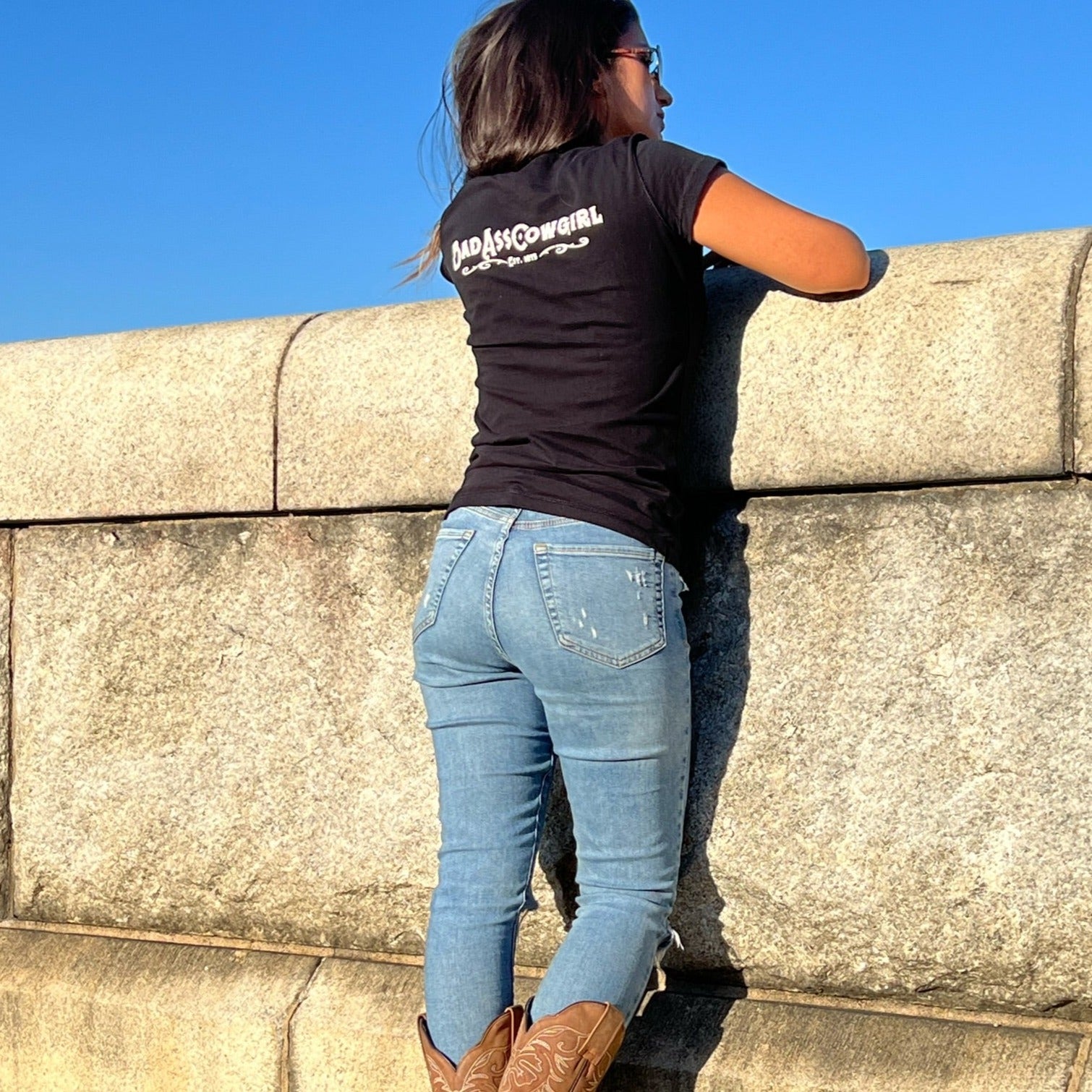 Bad Ass Cowgirl V-Neck Tee in Black (Slim Fit)
